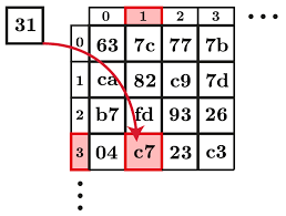 31 (16)이라는 값을 c7 (16)로 바꿨다. state를 2개의 4bytes데이터로 쪼개서 S-box에서 행, 열의 위치로 놓고 출력값 구함. [본문으로]